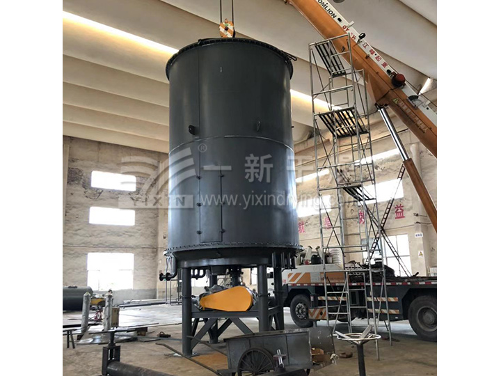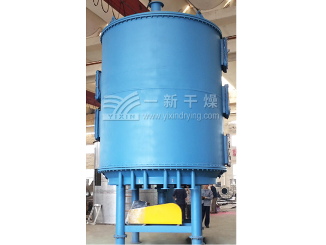 濕物料由加料器連續地加到干燥器上部di一層干燥盤上,帶有耙葉的耙臂作回轉運動使耙葉連續地翻抄物料。物料沿指數螺旋線流過干燥盤表面,在小干燥盤上的物料被移送到外緣,并在外緣落到下方的大干燥盤外緣,在大干燥盤上物料向里移動并從中間落料口落入下一層。
