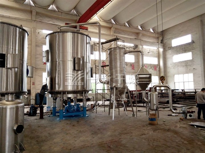 該生產線是我司盤式干燥機應用的成功案例,在實際生產過程中具有其他干燥設備無法比擬的技術優勢,能夠將含水率55%的物料在140℃以下干燥到0.5%以下,從而保證物料的品質。