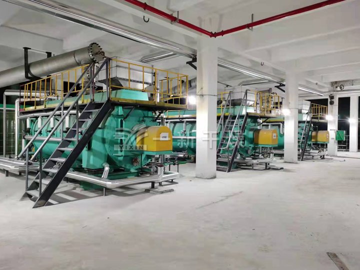 分離的液體(含稅率為70%)由單軸圓盤進行二次烘干。圓盤式干燥機作為新型研制烘干母液的干燥設備與其噴霧干燥機相比,烘干物料相對較好,現(xiàn)在已經(jīng)成為相當成熟的干化工藝,在市場上占有率也非常高。圓盤式干燥機主體由一個圓筒形的外殼和一組中心貫穿的圓盤組成。圓盤組是中空的,熱介質(zhì)從這里流過,把熱量通過圓盤間接傳輸給物料。物料在圓盤與外殼之間通過,接受圓盤傳遞的熱,蒸發(fā)水份,物料水份蒸發(fā)形成的水蒸氣聚集在圓盤上方的穹頂里,被少量的通風帶出干化機,并進入冷凝器能把氣體或蒸氣轉(zhuǎn)變成液體,將管子中的熱量,以快的方式,傳到管子附近的空氣中。冷凝器工作過程是個放熱的過程,所以冷凝器溫度都是比較高的。冷凝器隨之流下的廢水流入緩沖罐內(nèi)集中收集交由污水處理廠處理。圓盤式干燥機的圓盤有兩個作用:一是它給物料提供足夠大的換熱面積,二是它緩慢轉(zhuǎn)動,使圓盤干燥機上的小推進器推動物料向指定的方向流動并起到攪拌作用。圓盤干燥機利用每個圓盤的雙面?zhèn)鳠幔梢栽谛】臻g里提供很大的換熱面積,這使得圓盤干燥機體型緊湊。圓盤的轉(zhuǎn)動變頻可調(diào),轉(zhuǎn)速約為5r/min,因此磨損很小。圓盤盤面與軸是垂直的,所以它本身的轉(zhuǎn)動不影響物料的流向,圓盤干燥機的圓盤邊緣有一些小槳葉,這些小槳葉有一定的傾角,既幫助物料定向流動,雙起到攪拌的作用。外殼是不動的,它容納物料和物料蒸發(fā)產(chǎn)生的水蒸汽。外殼內(nèi)壁有固定的刮刀。刮刀很長,伸到圓盤之間的空隙,防止有大塊物料固結在盤片上。與圓盤上的槳葉類似,固定刮刀也起到攪拌的作用。圓盤式干燥機與其他間接干燥設備相比具有,傳熱面積大,攪拌效果好,更能促進水分的蒸發(fā)和去除等優(yōu)點,是新開發(fā)的一款改良型簡接加熱干燥機。圓盤干燥機主要是由定子(外殼),轉(zhuǎn)子(轉(zhuǎn)盤)和驅(qū)動裝置組成。圓盤干燥機通過轉(zhuǎn)盤邊緣的推進/攪拌器的作用,物料被均勻緩慢地輸送通過整個干燥機,并通過與轉(zhuǎn)盤的熱接觸被干化。