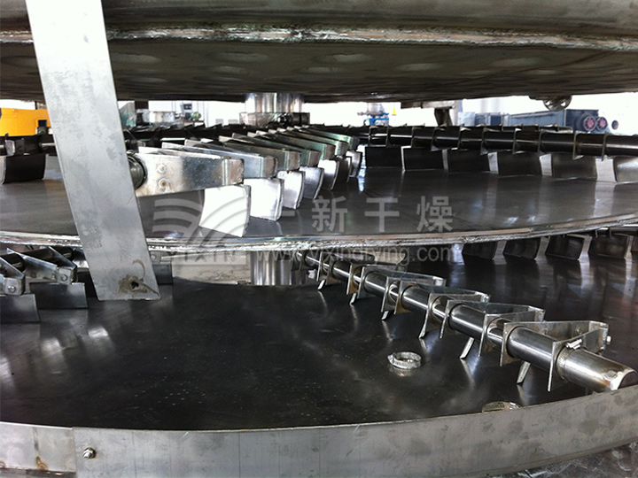 2.每層干燥盤皆可通入熱介質(zhì)或冷介質(zhì)、對物料進行加熱或冷卻,物料受熱均勻,溫度控制準確、容易。